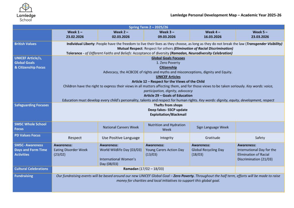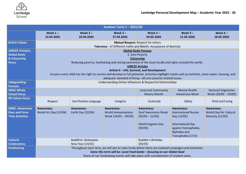 At Lamledge School, we are committed to fostering the holistic development of our students through dedicated SMSC (Spiritual, Moral, Social, and Cultural) education.